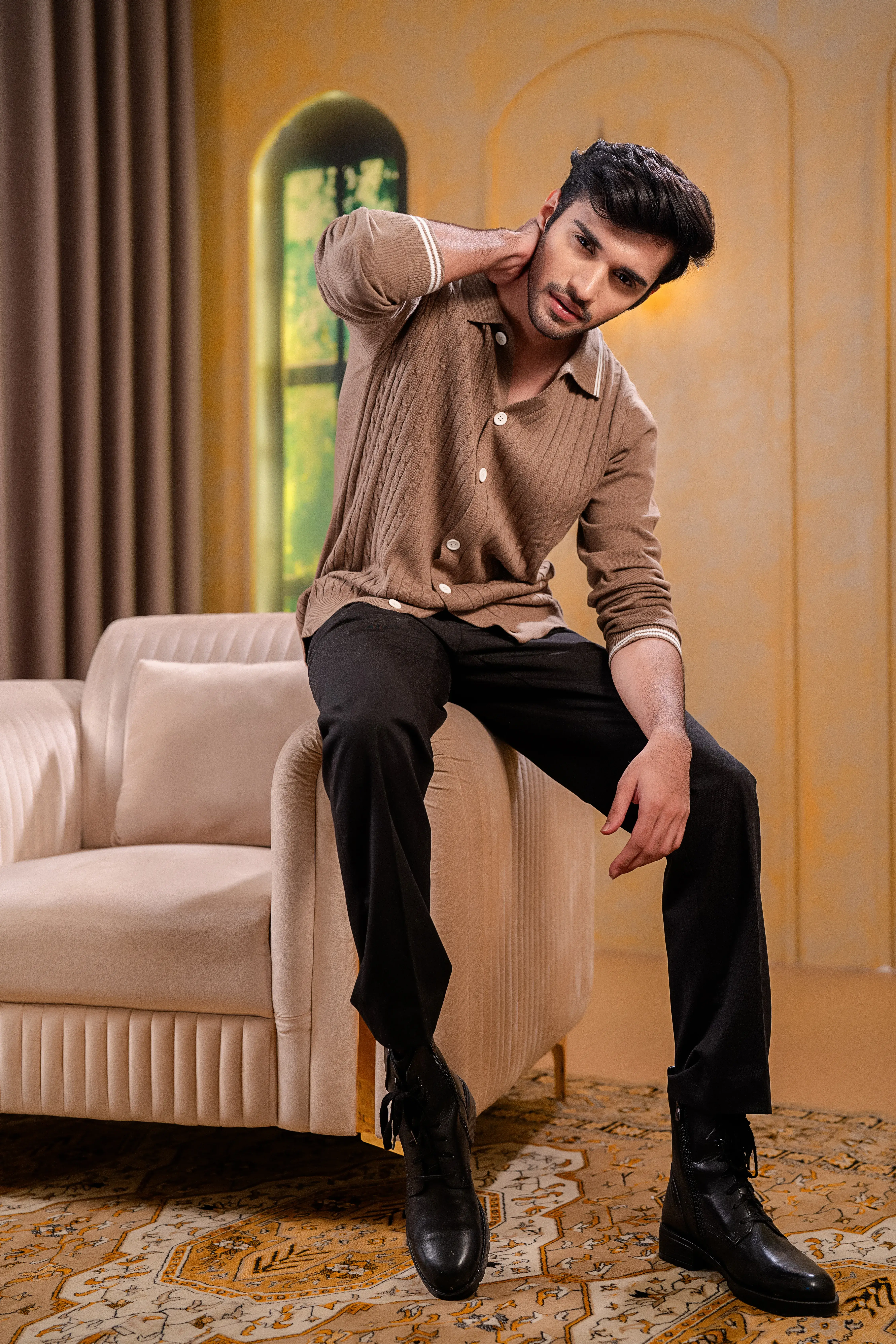 This premium cable-knit sweater is crafted for the man who values quiet confidence over show, comfort over clutter, and timeless style over trends.